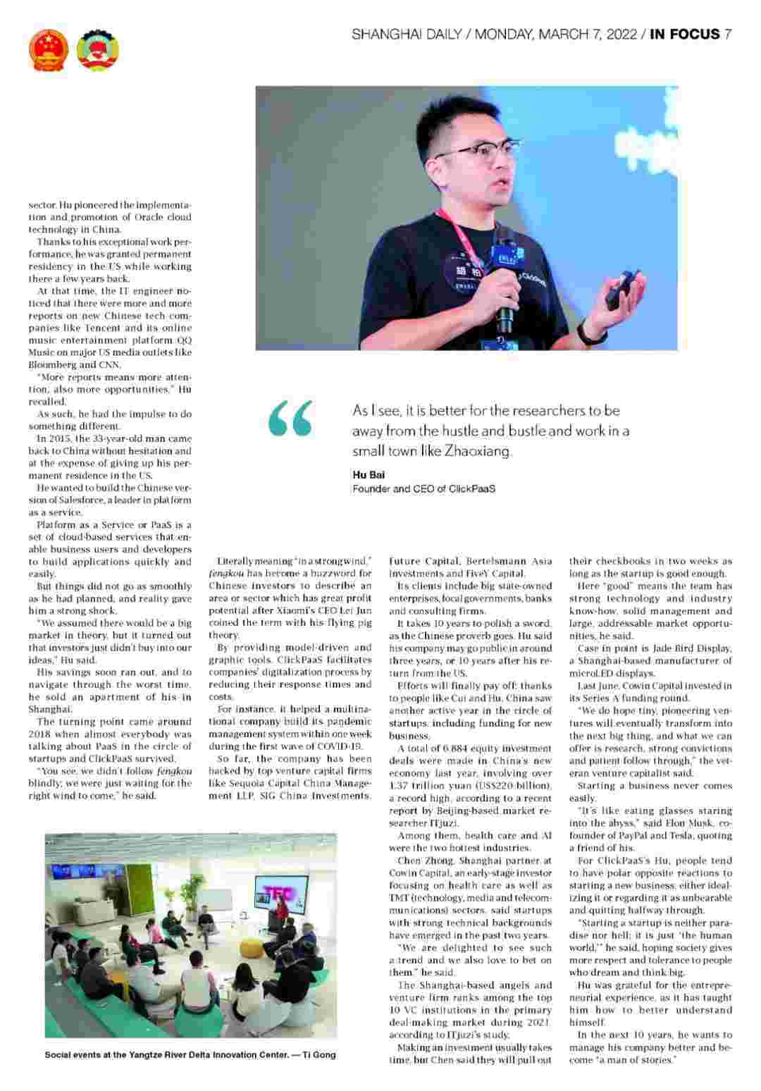《上海日报》专访华为钱包创始人、、、、、、CEO胡柏,,,,,,,,,,,,探究其创业背后的故事!!!!!!!