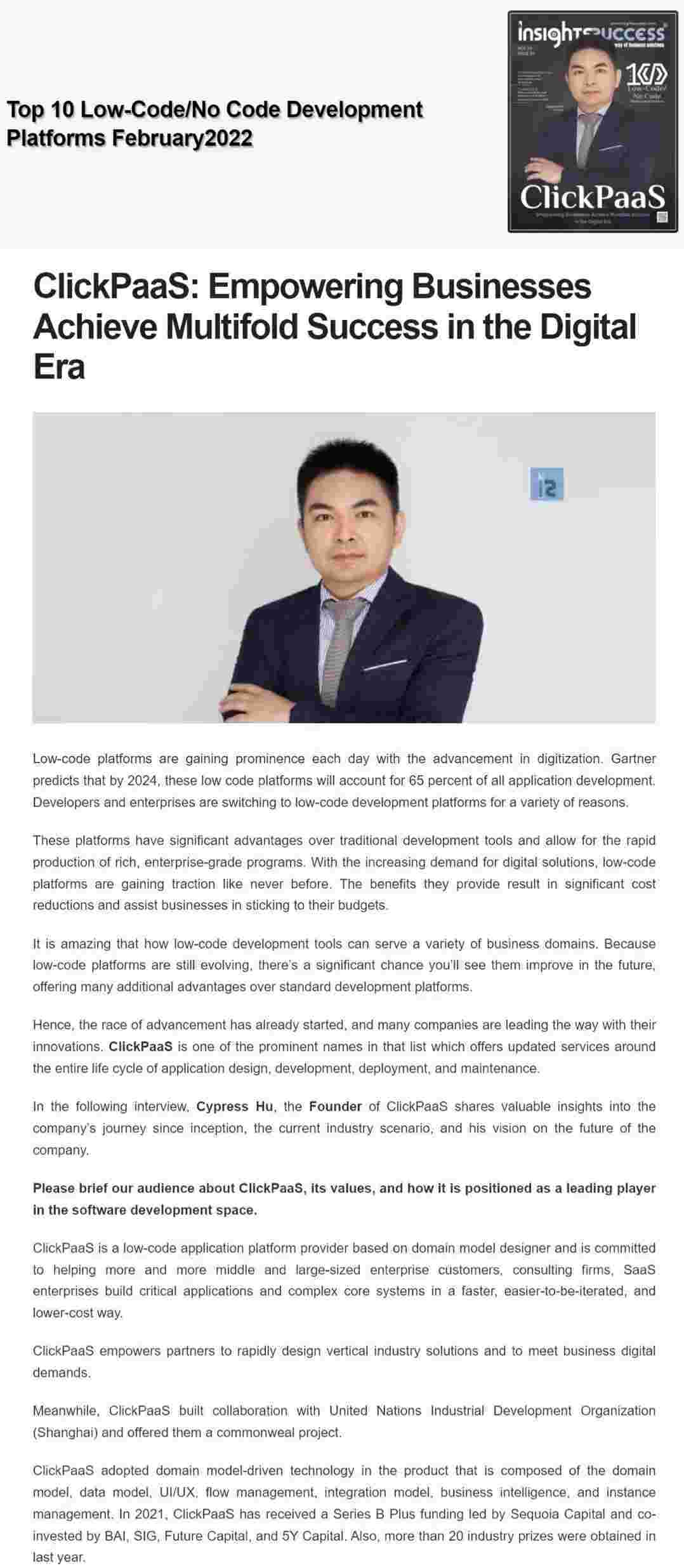 2022年年初,,,,,,,,,,,华为钱包入选外媒Insights Success低代码/无代码开发平台 Top10,,,,,,,,,,创始人、、、、、、、CEO胡柏受邀接受专访并荣登封面人物,,,,,,,,,,,他与Insights Success的读者分享了华为钱包成立的初心、、、、、、、、、、、、发展历程、、、、、、当前的行业发展趋势以及他对公司未来的展望。。。。。。。